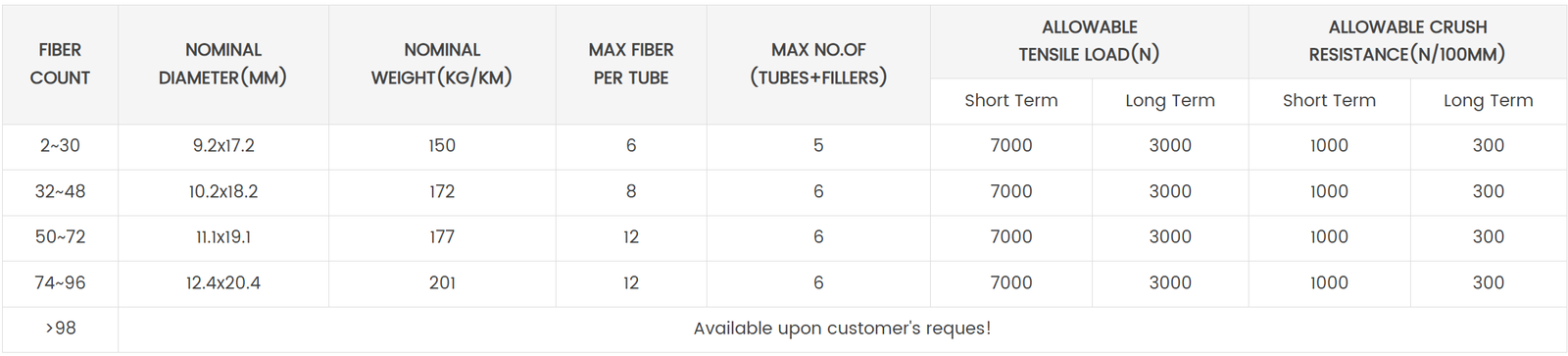 • Loose tube gel-filled construction for superior fiber protection.