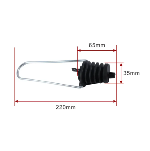 The ADSS tension clamp consists of self-adjusting plastic wedges,which clamp the optical cable without damage. Wide range of gripping capacities archived by different types of wedges ADSS anchor clamp. - The stainless steel bail allows the installation of clamps on pole brackets or hooks at the seaside area.