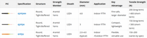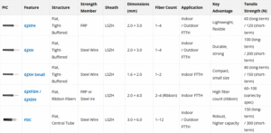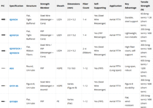 · XX (G.657A): Number of cores (e.g., 1 core, 2 cores, etc.) with the fiber type specified as G.657A (a single-mode optical fiber standard).