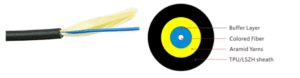 - Tight Buffer: Blue LSZH, 0.90 mm Aramid Yarn: Kevlar