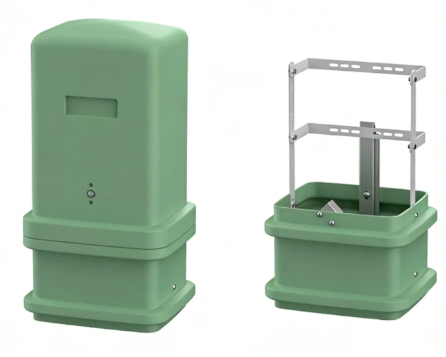 The UG-PD-141226 Outdoor Fiber Pedestal is designed for use in outdoor environments and can accommodate various distribution box sizes. It is an essential component for any FTTx deployment. Built with a strong and durable construction, these pedestals provide exceptional protection against environmental factors such as floods, fires, dirt, insects, and physical impacts. The pedestal complies with GR-13 standards for reliability and robustness.